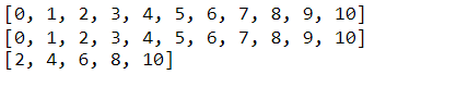 range(): This is a handy tool whenever we want to create a sequence of numbers. Suppose we wanted to create a list of integers from zero to ten. We could explicitly type out each integer, but that is not very efficient. Instead, we can use range to accomplish this task. We can provide a range with a start and stop value to create this sequence. Or, we can provide just a stop value, assuming that we want our sequence to start at zero. Notice that the stop value is exclusive, or up to but not including this value. Also note that the range function returns a range object, which we can convert into a list and print. The range function can also accept a start, stop, and step value (in that order).