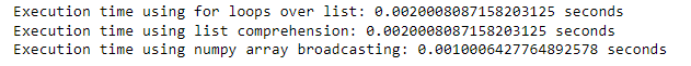 Here lies the second advantage of NumPy arrays — their broadcasting functionality. NumPy arrays vectorize operations, so they are performed on all elements of an object at once. This allows us to efficiently perform calculations over entire arrays.