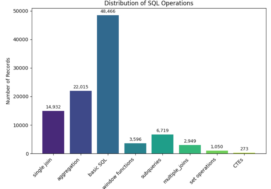 This curated approach ensured balanced training across essential SQL patterns while avoiding over-representation of simple queries.
