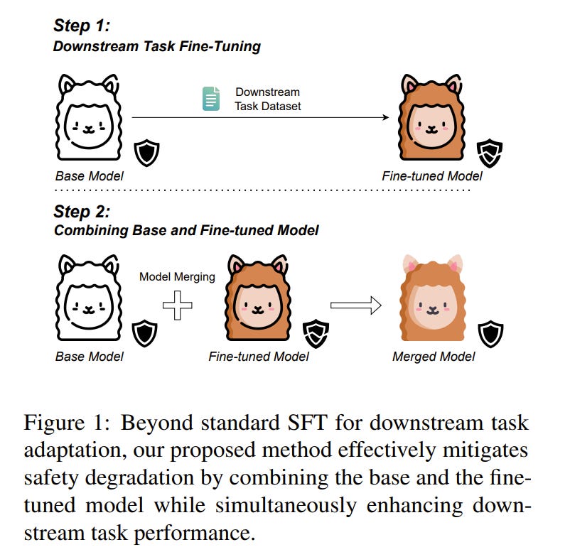 We propose a simple and effective method that maintains the inherent safety of LLMs while enhancing their downstream task performance: merging the weights of pre- and post-fine-tuned safety-aligned models.