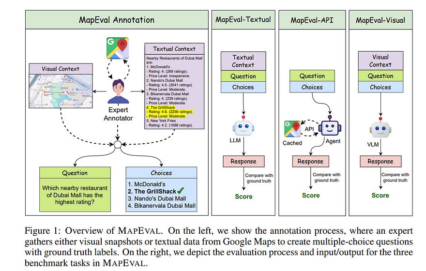 Comprising 700 unique multiple-choice questions about locations across 180 cities and 54 countries, MapEval evaluates foundation models’ ability to handle spatial relationships, map infographics, travel planning, and navigation challenges.